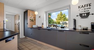 Ejendommen som ligger på en grundstørrelse af 603 kvadratmeter, er sat til salg for 2.645.000 kr., hvilket gør den til et mere prisvenligt alternativ i Kolding.